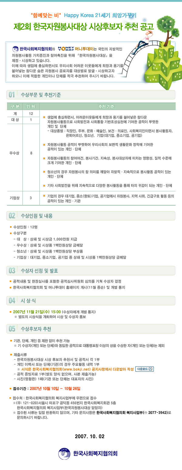 제2회 한국자원봉사대상 시상후보자 추천 공고
