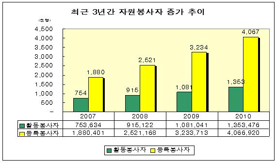 * 활동봉사자: 2010.1.1~12.31 중 1회 이상 활동한 봉사자
