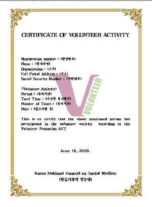 | 첨부파일 | certificate_volunteer.jpg(53960) 자원봉사실적인증서(영문).hwp(332500) | ||||