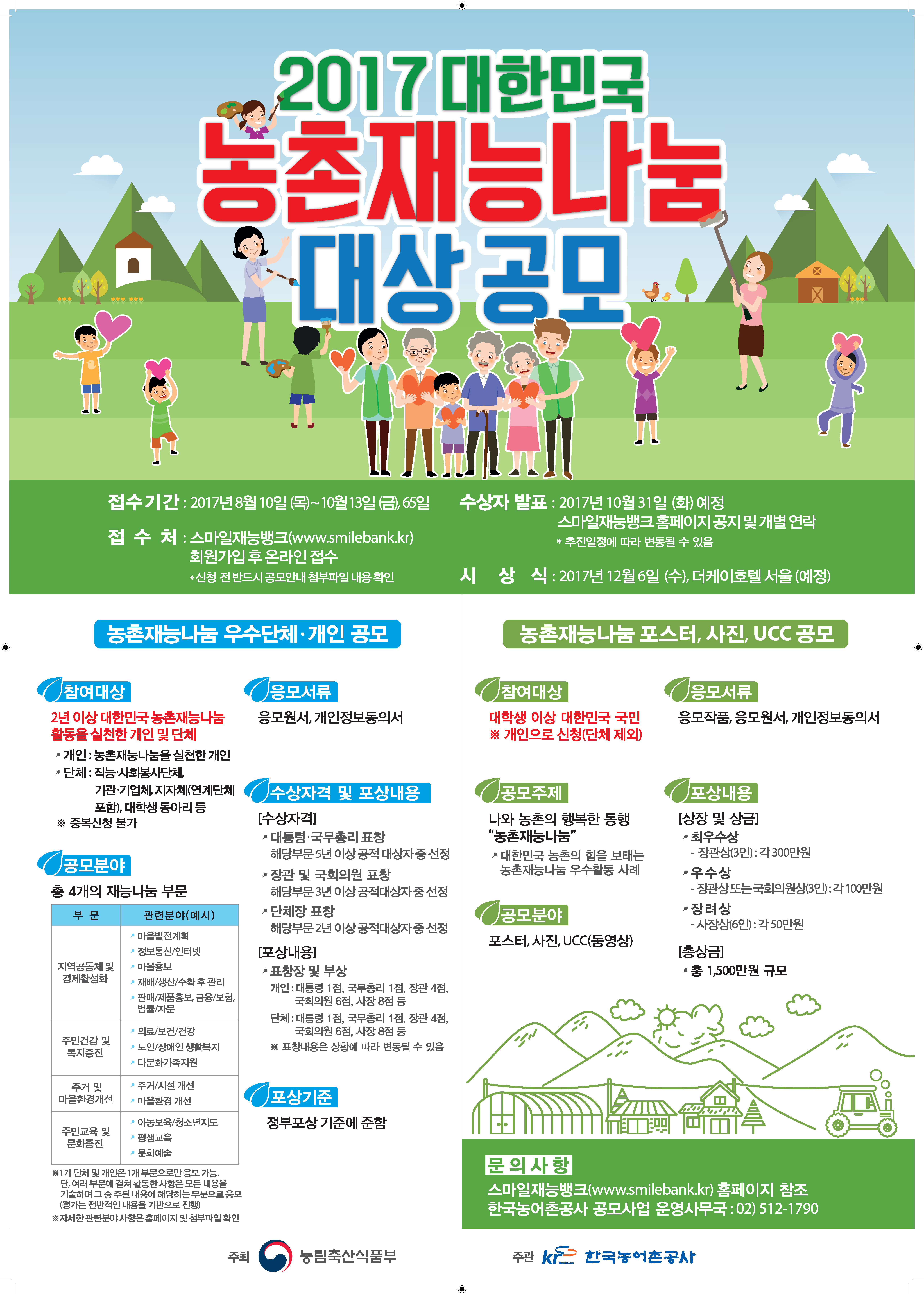 * 문의사항 : 농촌재능나눔 운영사무국(02-512-1790)