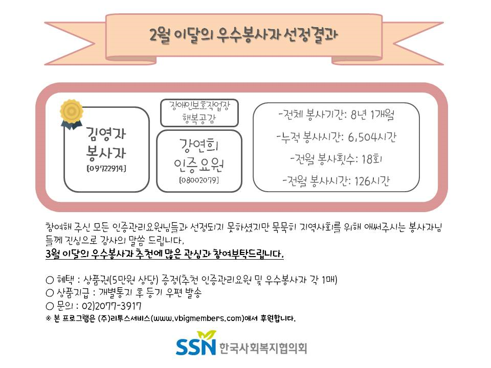 [공지]2018년 2월 이달의 우수봉사자 선정 결과