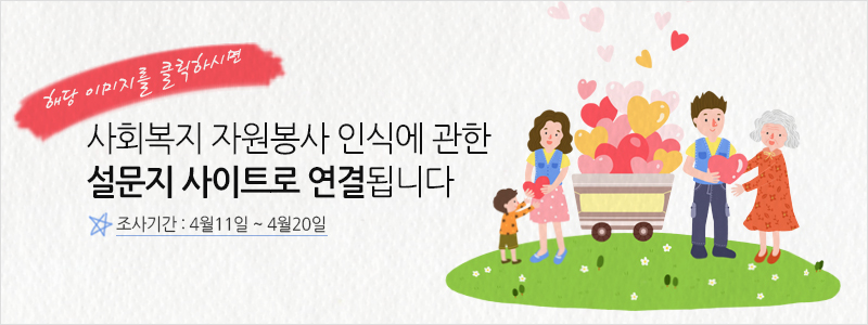 이에 사회복지 자원봉사활동 업무 담당자를 대상으로 자원봉사활동에 관한 설문조사를 실시하고자 합니다.
