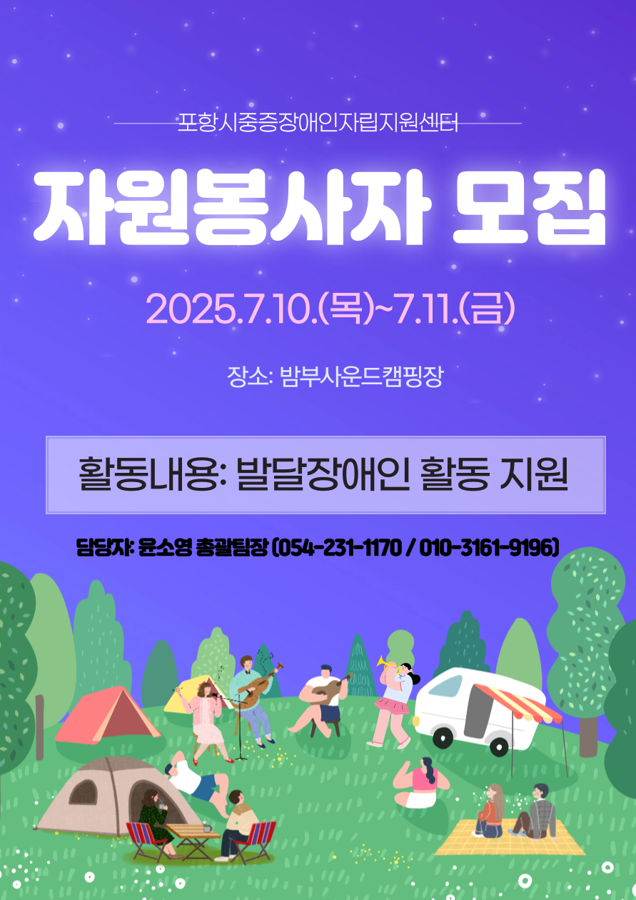 2025년 여름캠프(1박2일) 자원봉사자 모집
